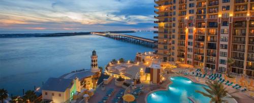 Welcome to Club Wyndham Emerald Grande at Destin, one of the most sought-after destinations on the Emerald Coast. Perfectly situated at the foot of Marler Bridge, this upscale resort offers breathtaking views of Destin Harbor, East Pass, Crab Island, and the sparkling Gulf of Mexico. With unbeatable scenery, walkable attractions, and luxury amenities, this is the quintessential Destin vacation experience.