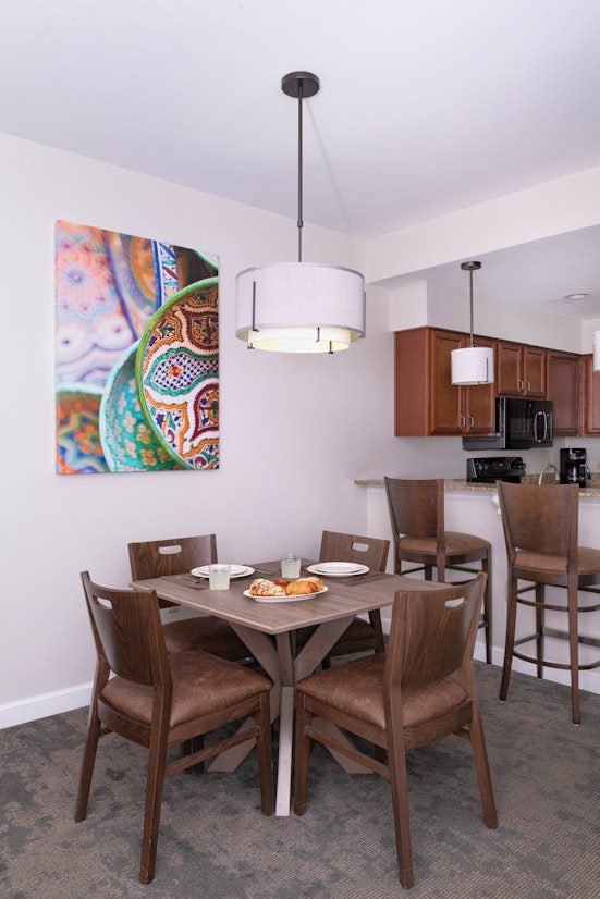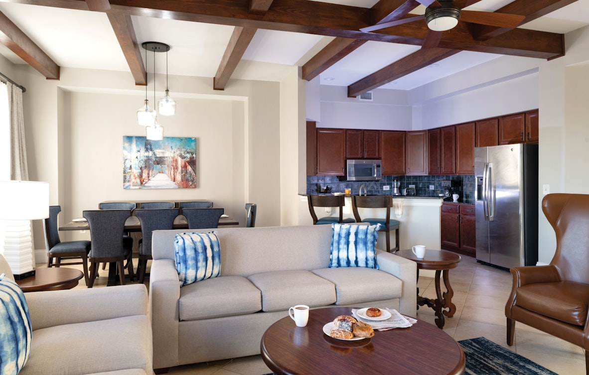 These spacious one- or two-bedroom resort suites comfortably sleep 4–6 guests and range from 812 to 1,220 square feet. Each suite includes: