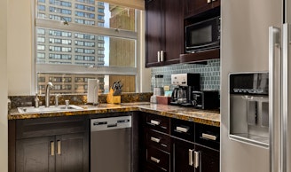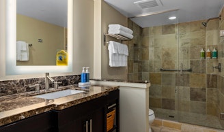 Choose from studio or one-bedroom presidential resort suites, comfortably accommodating 2–4 guests, with suite sizes ranging from 380 to 815 sq. ft.